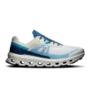 On Cloudvista 2 – Descrição Características principais. Peso: 245g Tênis para corrida de trilha aprimorado e versátil para terrenos mistos Com amortecimento mais macio e ligeiramente mais alto Speedboard® bifurcada reprojetada para maior rebote Sola aderente Missiongrip™ para tração em terrenos mistos Entressola de superespuma Helion™ mais macia Para mais diversão e uma corrida mais rápida Cabedal respirável com visual minimalista Aprimorado para um ajuste fiel ao tamanho O visual é o mesmo. Mas a sensação é completamente nova. Tudo pronto para arrasar nas trilhas? A nova geração do Cloudvista 2 foi reprojetada com uma forma basculante mais pronunciada, para uma transição do calcanhar para a ponta do pé mais suave a cada passo. O amortecimento suave e a maior altura deixam você mais confortável e melhoram a sensação sob os pés. Responsivo em corridas de trilha Com seu design minimalista e bifurcado, a nova e flexível Speedboard® aumenta o rebote e a responsividade. O resultado é uma corrida mais rápida e divertida. Além disso, o cabedal chamativo e respirável mantém seus pés refrescados (sem abrir mão do visual). Feito para terrenos mistos Subimos de nível com uma nova sola de borracha ultra-aderente Missiongrip™ para evitar deslizes (mesmo em superfícies lisas). E, para uma melhor tração, atualizamos o padrão da sola e adicionamos relevos maiores e mais arrojados. Assim, você chega ao topo com total confiança.