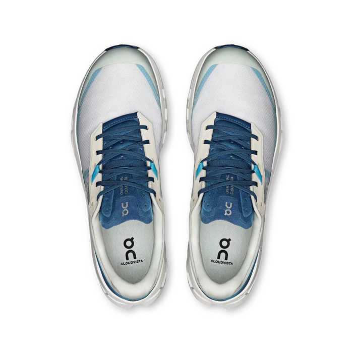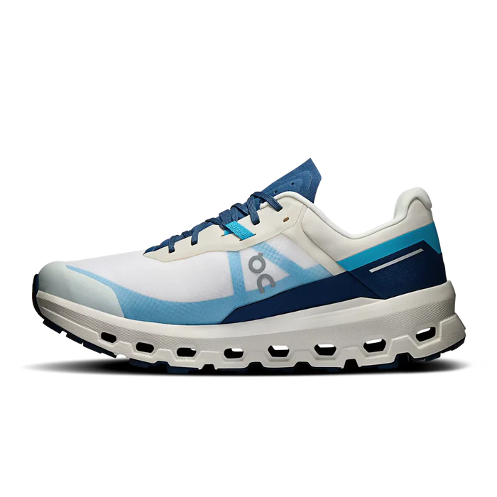 On Cloudvista 2 – Descrição Características principais. Peso: 305g Tênis para corrida de trilha aprimorado e versátil para terrenos mistos Com amortecimento mais macio e ligeiramente mais alto Speedboard® bifurcada reprojetada para maior rebote Sola aderente Missiongrip™ para tração em terrenos mistos Entressola de superespuma Helion™ mais macia Para mais diversão e uma corrida mais rápida Cabedal respirável com visual minimalista Aprimorado para um ajuste fiel ao tamanho O visual é o mesmo. Mas a sensação é completamente nova. Tudo pronto para arrasar nas trilhas? A nova geração do Cloudvista 2 foi reprojetada com uma forma basculante mais pronunciada, para uma transição do calcanhar para a ponta do pé mais suave a cada passo. O amortecimento suave e a maior altura deixam você mais confortável e melhoram a sensação sob os pés. Responsivo em corridas de trilha Com seu design minimalista e bifurcado, a nova e flexível Speedboard® aumenta o rebote e a responsividade. O resultado é uma corrida mais rápida e divertida. Além disso, o cabedal chamativo e respirável mantém seus pés refrescados (sem abrir mão do visual). Feito para terrenos mistos Subimos de nível com uma nova sola de borracha ultra-aderente Missiongrip™ para evitar deslizes (mesmo em superfícies lisas). E, para uma melhor tração, atualizamos o padrão da sola e adicionamos relevos maiores e mais arrojados. Assim, você chega ao topo com total confiança.